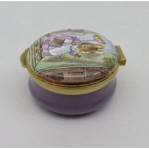 Crummles Beatrix Potter HUNCA MUNCA Enamel Trinket Pill Box in Display Case Vint