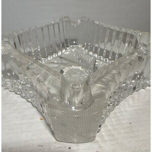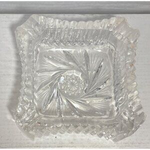 Crystal Ashtray Square Vintage Pinwheel Clear Cut Glass Ribbed & Etched Heavy