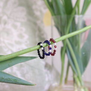 Crystal Blue Stone Bead Ring with Seed Pearls