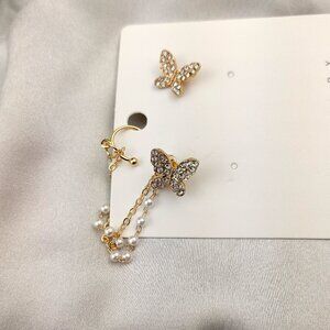The cuff clip design allows for easy and comfortable wear on a single ear, making them perfect for adding a touch of glamour to any outfit. Whether you're dressing up for a special occasion or just want to elevate your everyday style, these Crystal Butterfly Cuff Clip Earrings are sure to make a statement.