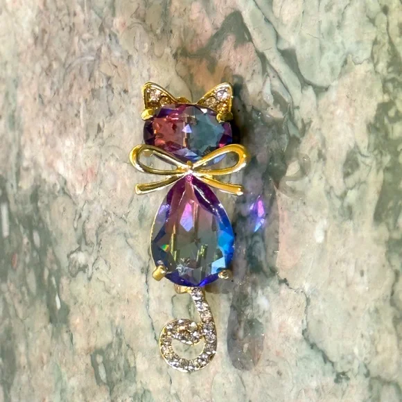 Crystal Cat Pin Brooch
