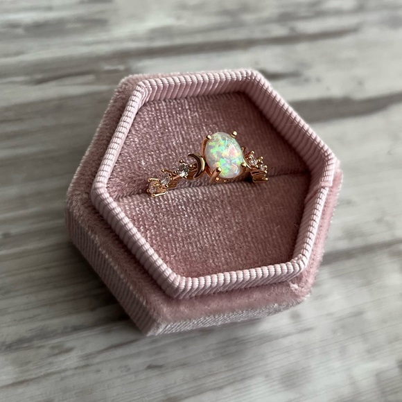 Crystal Crescent Moon Ring - Size 5.5