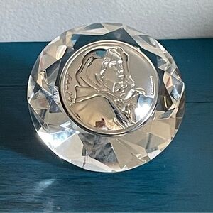 Crystal Diamond Paperweight With Silver Madonna and Child Portrait