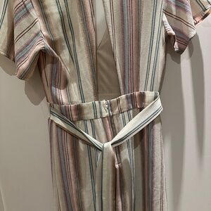 Features: open back, zipper back, waist tie, lined shorts with an overlay
