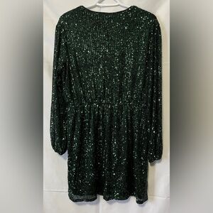 Crystal Doll Dress Women’s L Sequin Green Glitter Midi Length