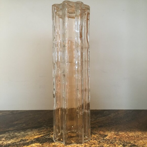 Fair preowned condition crystal glass cylinder light pendant. There are some bubbles and imperfections in the glass. I don't think it is Murano glass as there is no stamp and there is some patterning that seems manufactured to me, but I could be wrong. Has some substantial weight. I have six for sale in different states of condition. This one is not chipped, but has quite a fair bit of fracturing (please see close ups). Won't fall apart, but definitely isn't in as good condition as the rest.