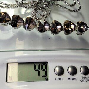 8 crystal Heart Shaped Pendant on a Long Silvertone chain