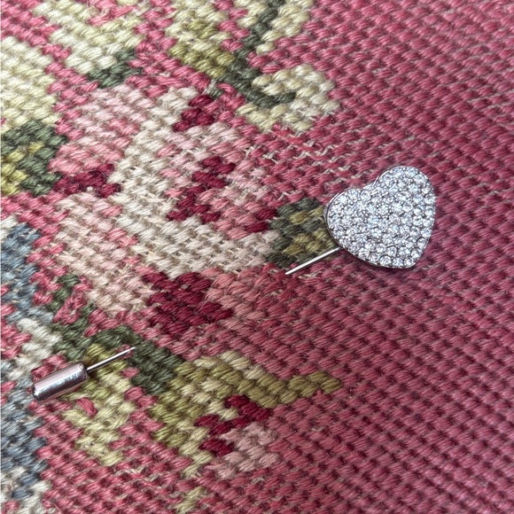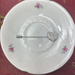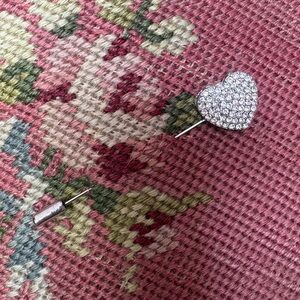 Sparkling heart stick pin with pavé crystal detail. Perfect for blazers, scarves, hats, or lapels.