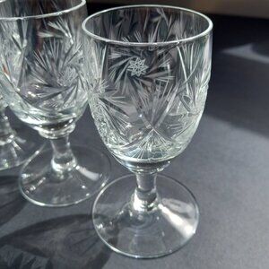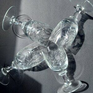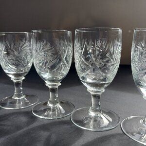 Crystal Liqueur Glasses Set of 4 Vintage Pinwheel Tulip Stemmed Glasses
