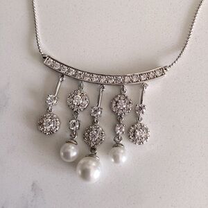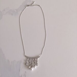 Crystal and pearl necklace. Delicate and elegant necklace, chain extends up to 17.5 inches. Classic design, sliver tone.