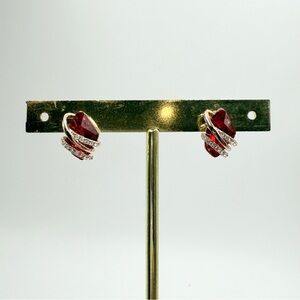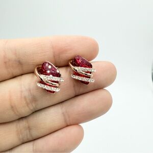 Crystal Red Stud Rhinestones Rose Gold Tone Earrings