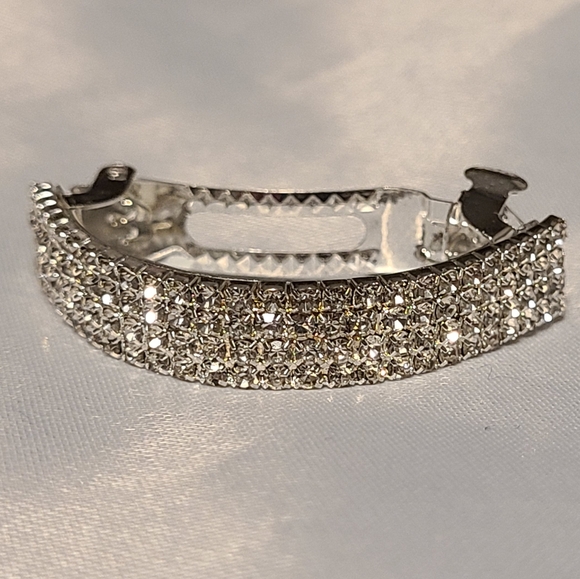 Crystal Rhinestone Silver Tone Barrette Hair Clip