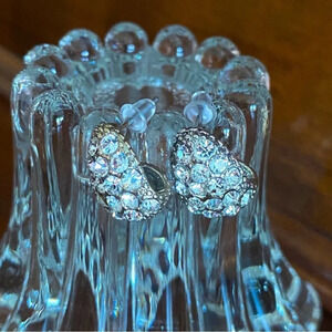 Dainty Silver tone rhinestone studded half huggie style pierced earrings