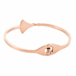 Crystal Rhinestone Ginkgo Leaf Bangle, Stainless Steel Hinged Bangle with Polymer Clay for Women, Rose Gold