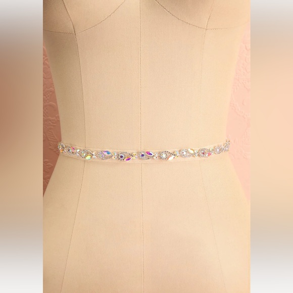 Elevate your outfit with this delicate and shiny crystal ribbon belt! Its floral crystals will add a dainty and elegant touch to your look.