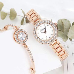 Crystal Watch and Bracelet Set: This product is a set of watches and bracelets. The watch is a very simple but designed ladies bracelet watch with very shiny crystal on the bezel. The dial is a glossy mother-of-pearl