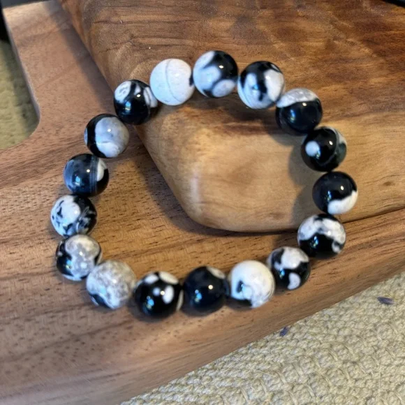 Orca agate natural crystal stretchy bracelet. 10mm beads, approx 6.5”. Brand new, handmade.