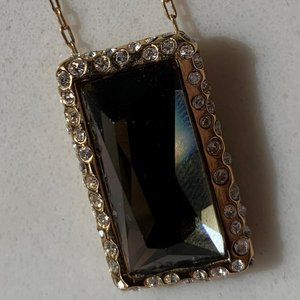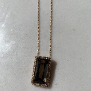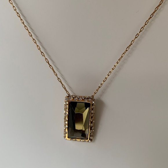 Beautiful green brown crystal necklace surrounded by clear pave crystals; gold-tone chain. 8" drop