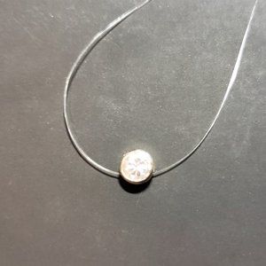 Dainty and versatile Silver tone metal necklace with cubic zirconia on a clear wire.