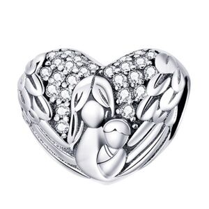Cubic Zirconia & Sterling Silver Heart Mom & Baby Charm