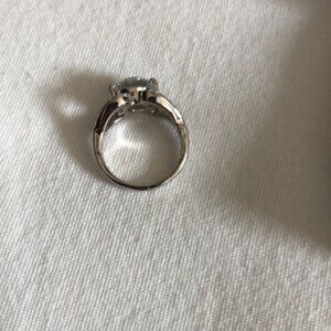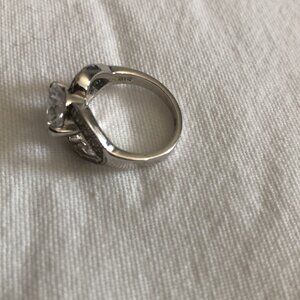 Worn once, cubic zirconia ring, clear center stone, silver band, size 5
