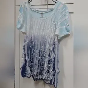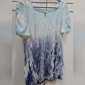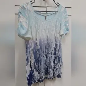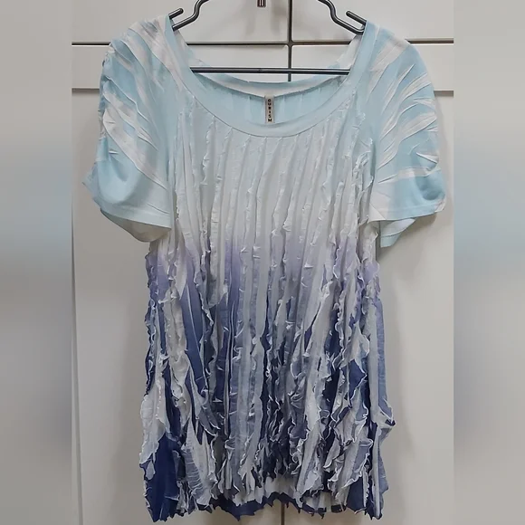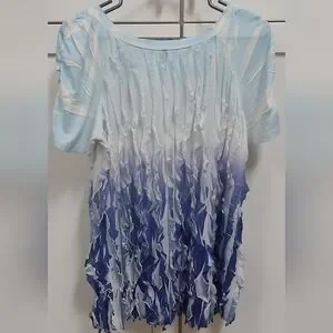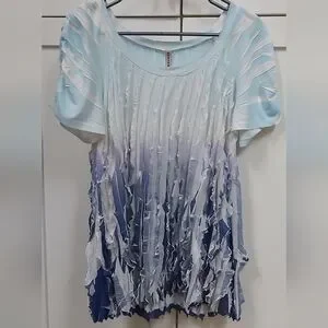 🌼 Cubism Ruffle Ombre Top. Short sleeved, vertical ruffles, ombre, ruching on sleeves, stretchy.