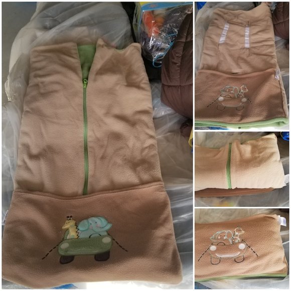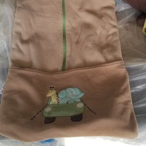"This Cuddle Care Stroller Blanket will keep your little one cozy and warm when out and about and may be used in strollers or infant car seats. Designed in two layers of cozy fleece, the Stroller Blanket can be zipped fully closed or opened as weather changes. The foot pocket features an adorable animal applique and may be folded back when not needed. It is designed to hold the blanket when stored.