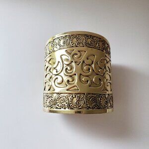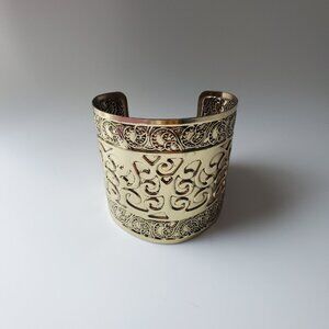 Cuff Bracelet Women's Goddess Style Open Bangle Rustic Goldtone & Black Textured