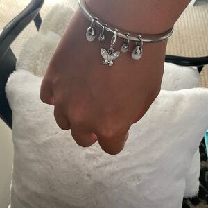 Morellato Italy silver cuff bracelet with charms. This bracelet is a stylish and elegant piece of jewellery. Made in Italy, the bracelet features a cuff style design with beautiful charms.