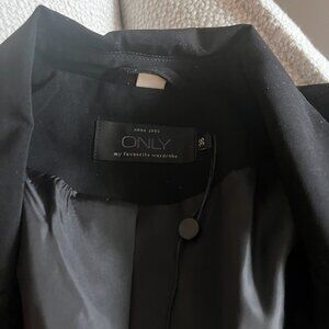 Black cuffed blazer jacket with striped detailing on the cuff. Never worn, from the only. Has pockets and is comfortable. Got this from 8th & Main in Vancouver.