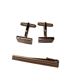 Cufflinks and Tie Clip Set Rose Gold Tone Metal Wedding Formal Tux