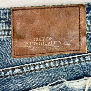 Elevate your denim game with these Cult of Individuality Hagen relaxed Japanese Selvedge Distressed Jeans. The classic rise and 5-pocket design make them a versatile addition to any wardrobe. The medium wash and distressed features add a touch of edge to the solid blue color. Crafted from high-quality cotton fabric, these jeans are perfect for all seasons and can be dressed up or down. The button closure and waist size of 32 inches ensure a comfortable fit. Follow the label for proper garment care. Get your hands on these stylish jeans from Cult of Individuality today.