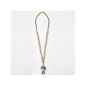 Necklace measures 29". Pendant is made up of two layers of 40% recycled plastic that encapsulates Dyed moth silk cocoon interlayer inside. Light weight.