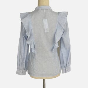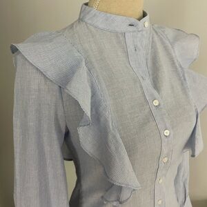 Cupcakes & Cashmere Striped Button Down Top Blue White Ruffled Size XS NWT