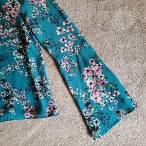 V-neck blouse with bell sleeves and a beautiful floral pattern. In very good used condition