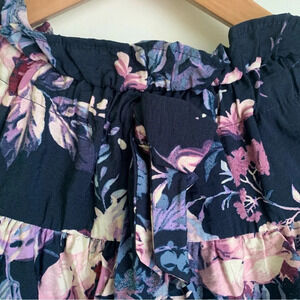 Cupio Womens Floral Print Ruffled Front Peasant Boho Blouse Top Sz L