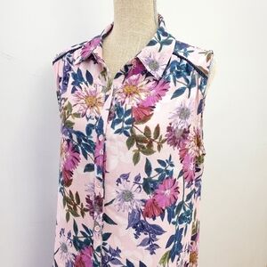 Cupio Women Sleeveless Floral Spring Summer Beach Cover Up Hi-low Dress Size L