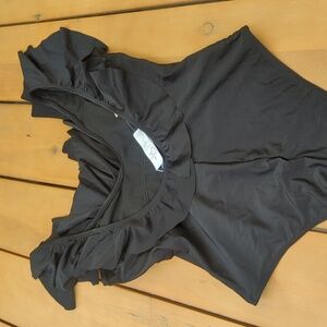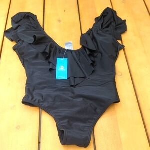 Cupshe Elegant Round Neck Black Ruffle Swimsuit - Small NWT