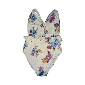 Cupshe Floral Ruffled Plunging Vneck Open Back One Pieces Size Small