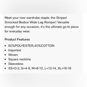 Cupshe NWT women’s striped smocked bodice wide leg shorts romper XL