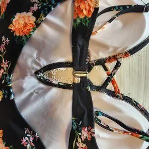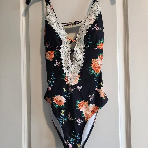 One piece, plunge, floral suit. NWT.