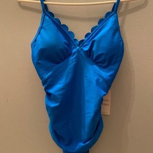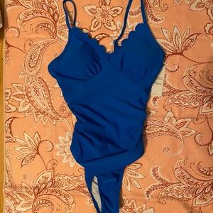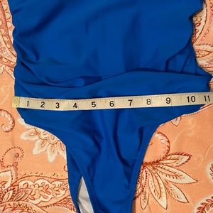 Cupshe One Piece Swimsuit Scalloped Neckline Ruched Waist Bright Blue