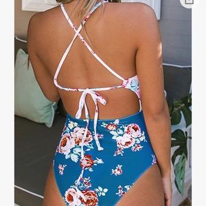 Cupshe Pink Blue Floral Cutout One Piece Swimsuit