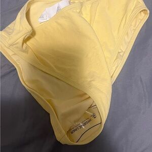 Brighten your beach day with this vibrant yellow bikini. Features playful ruffles and adjustable straps.