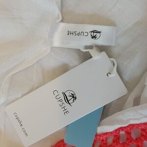 Cupshe White Boho Swim Cover-up ith Multi-colour Crochet and Fringe Trim Size L
