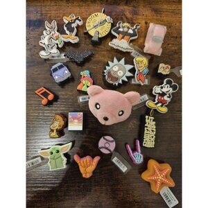 two dragons, bugs bunny, Daffy duck, naruto, fred, Mickey mouse, shaggy, baby yoda, Rick, broom squad, Batman emblem, music note, sunset, glowing starfish, rock on skeletal hand, let the black Flame candle, tiny treasure map, mushrooms, purple van, pink car, spinning basketball, hang loose, giant pink plush bear. most come with tags attached