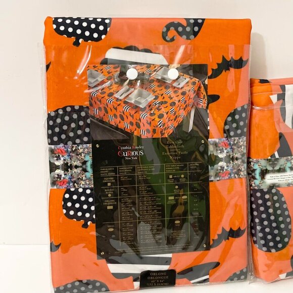 Curious By Cynthia Rowley Halloween Easy Care Tablecloth and Set of 6 Napkins