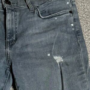 Grey Skinny Jeans with white splatter paint detail in the front. A little rip.