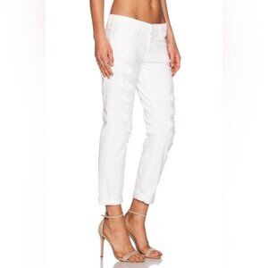 Revolve Current Elliott the Fling White Tattered Jeans Straight leg Boyfriend