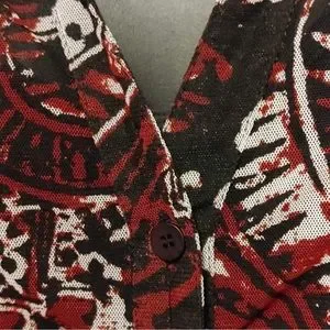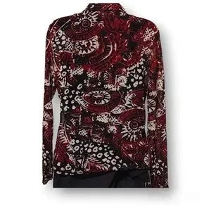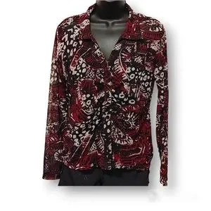Sheer blouse by Current with v-neck and black white and red mixed patterned print, long sleeve never worn